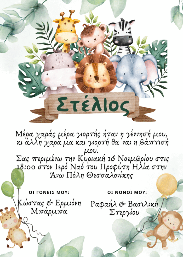 Προσκλητήριο Βάπτισης Ζούγκλα